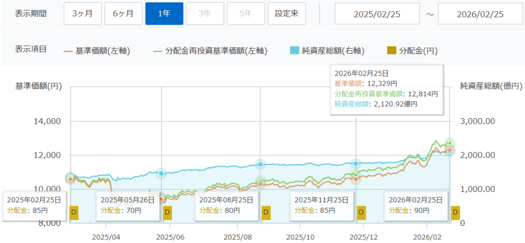 ●分配金後も基準価額12,000円台を維持、出しながら育つ理想形へ