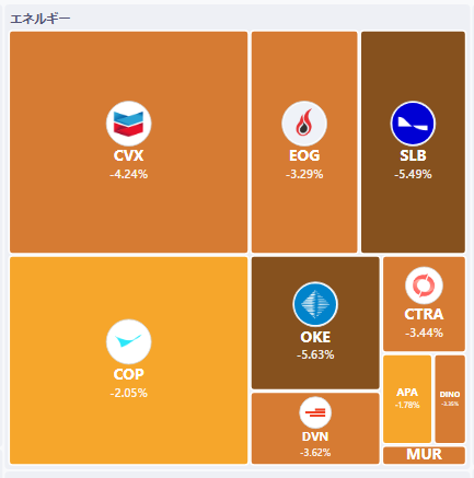 ・OKE-5.63%、SLB-5.49%、CVX-4.24%、EOG-3.29%と、大手が軒並み売られた