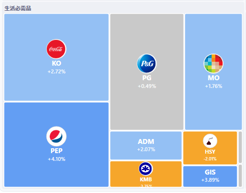 ・生活必需品ではPEP+4.10%、KO+2.72%が堅調