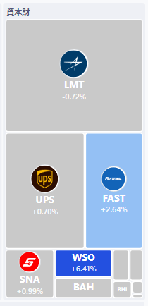 ・資本財ではWSOが+6.41%と突出。空調設備大手で、季節需要の先取りが背景にあると推測