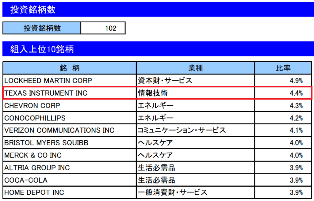 | 2️⃣ | メルク ヘルスケア 4.1% | テキサスインスツルメント 情報技術 4.4% |