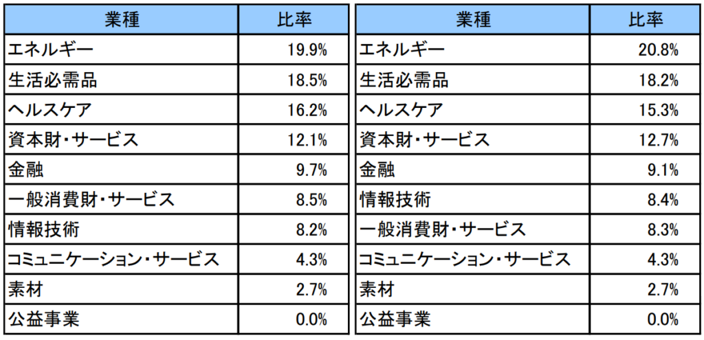 ●防衛・エネルギーの割合更に増加、情報技術セクターのテキサスインスツルメントが急上昇