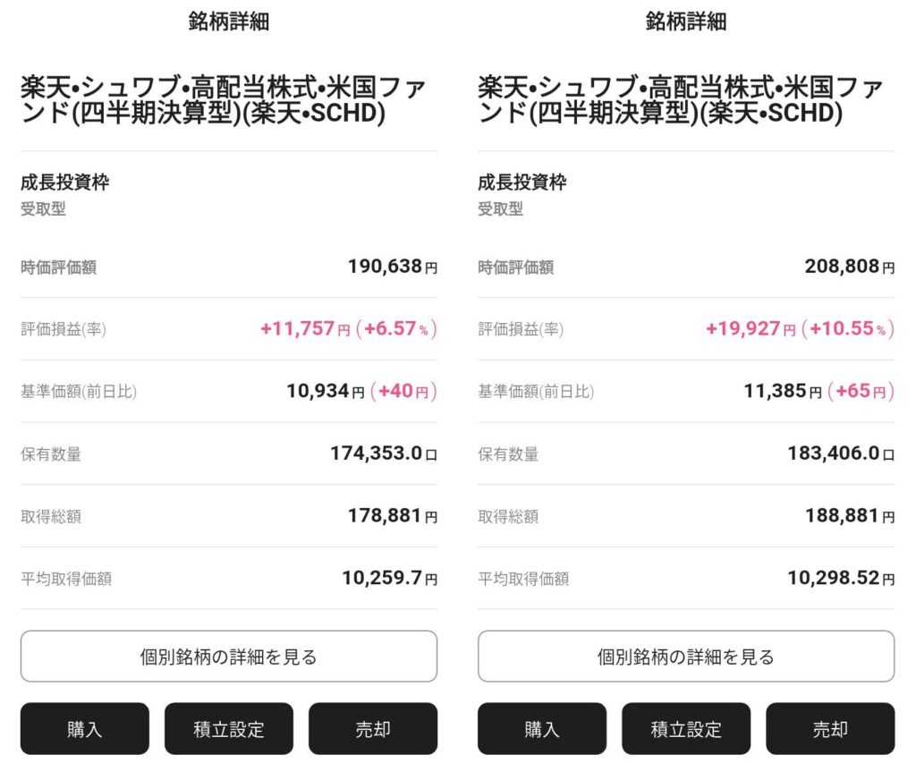 続いて、私自身の楽天SCHD保有状況です。