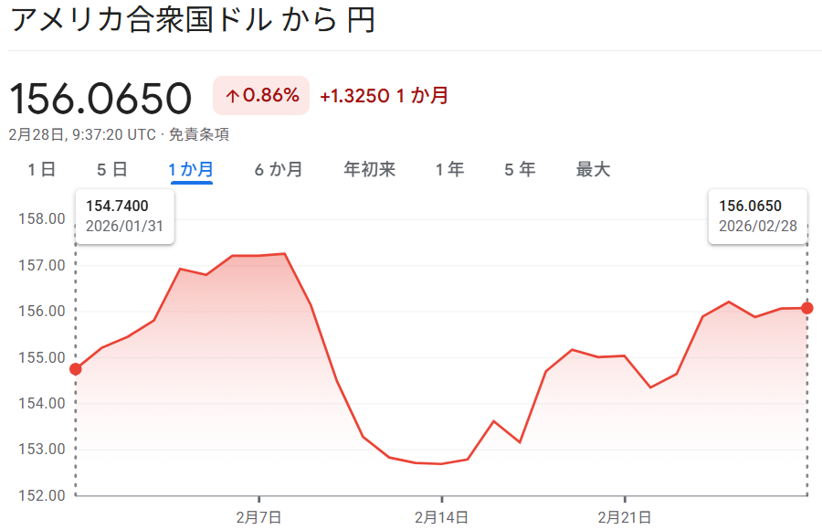 2月の為替はやや円安ドル高。