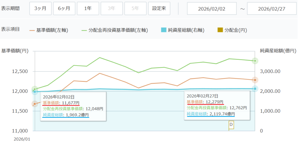 ●楽天SCHDも基準価額+5.16%上昇、分配金発生後も12,000円超え