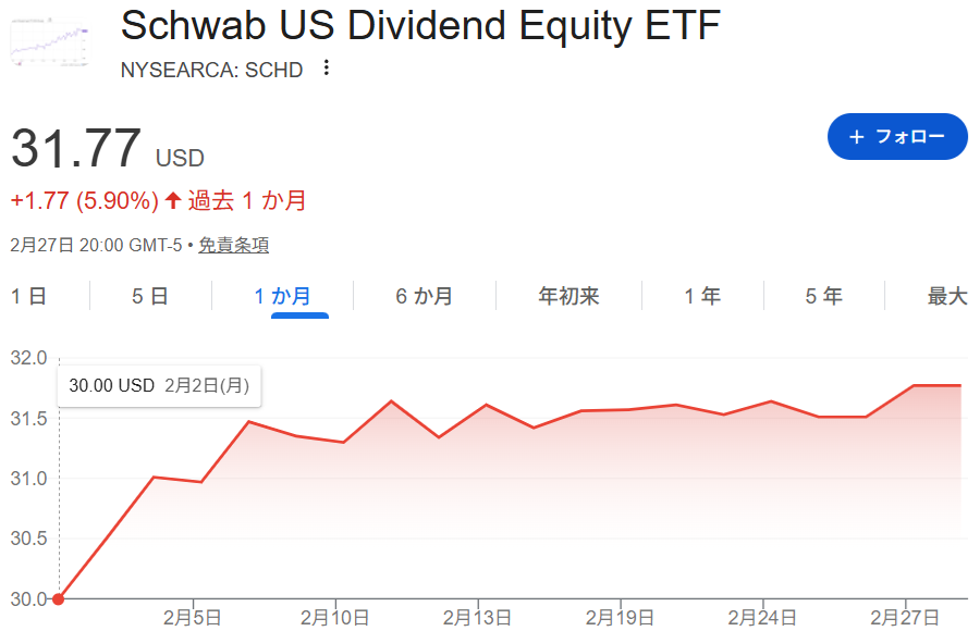 2月のSCHDは本家・楽天とも好調でした!