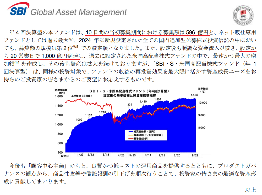 楽天SCHDが設定3ヶ月で1,000億円突破しましたが、SBI・SCHDは20日で1,000億円超えました😲