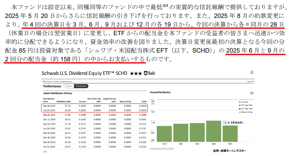 ・SCHDの配当を受け取った直後にファンドの決算日(28日)を迎える