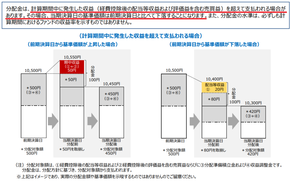 ・楽天SCHDは、「分配金は計算期間中に発生した収益を超えて支払われる場合がある」と明記